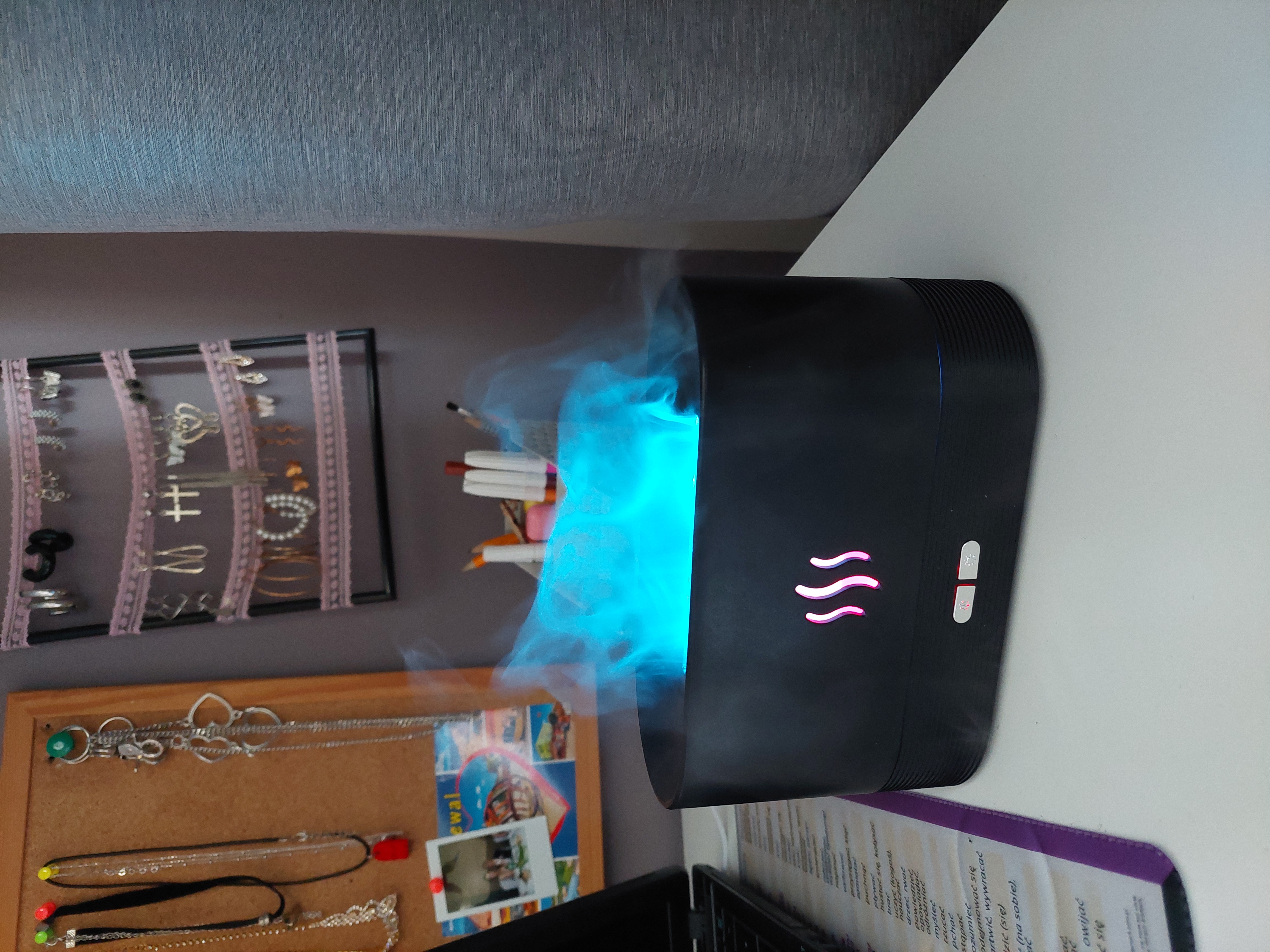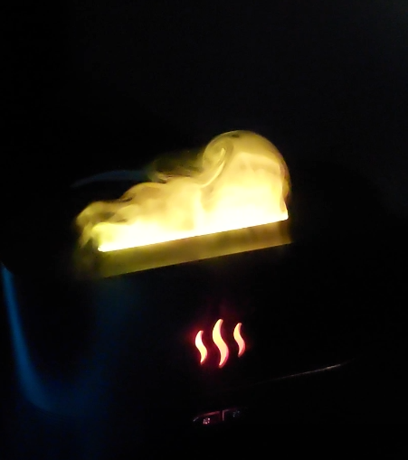 Podświetlenie wylatującej pary sprawia, że wygląda ona jak prawdziwy kominek z